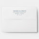 This wedding envelope features a minimalist design with centred text on a clean white background, creating an elegant and modern look. The muted teal blue colour palette adds sophistication, while the serif font ensures readability and visual consistency. With ample negative space, this design emphasizes clarity and simplicity, making it perfect for couples seeking a refined and professional aesthetic for their special day.