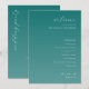 This wedding program features a minimalist and elegant design with a vertical layout, centered alignment, and ample negative space. The background showcases a gradient of teal hues transitioning from dark to light, creating a serene atmosphere. The typography includes a mix of cursive for the welcoming greeting, bold serif for the names, and clean sans-serif for event details, ensuring readability and sophistication. Perfect for couples seeking a modern and uncluttered aesthetic, this design captures the formal yet inviting mood of a significant life celebration.