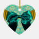 ELEGANT TEAL WHITE DAMASK BLUE RIBBON MONOGRAM CERAMIC ORNAMENT