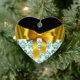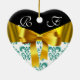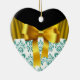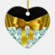 ELEGANT TEAL WHITE DAMASK GOLD RIBBON MONOGRAM CERAMIC ORNAMENT