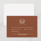 This is an elegant, formal, and classic botanical crest and monogram wedding rsvp response card in terra cotta.