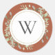 Elegant Terracotta Greenery Monogram Initial Classic Round Sticker