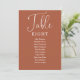 These terracotta elegant script double-sided seating chart table numbers are perfect for all celebrations. Designed by Thisisnotme©