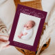 Elegant Thank You Calligraphy Cranberry Birth Announcement