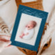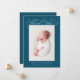Simple and minimalistic birth announcement card featuring typography text that says "thank you" in calligraphy style. You can add a photo on the front and back. The background is teal.