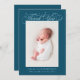 Elegant Thank You Calligraphy Teal Birth Announcement