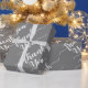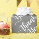 Use this classy and elegant grey and white thank you pattern wrapping paper to wrap presents for anyone you want to express your thanks. Designed in a fancy script typography style in an all-over pattern that will be displayed and seen on whatever side is shown.