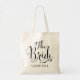 Make the bride feel celebrated with this stunning tote featuring "The Bride" in bold flowing calligraphy script and a personalized name in sophisticated block lettering. A perfect accessory for the bachelorette weekend, bridal shower, or wedding day getting ready. Name is fully customizable.