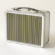 Elegant Thin Gold & Navy Blue Vertical Stripes Metal Lunch Box