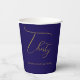 Celebrate 30 in style with this elegant navy blue and faux gold foil look paper cup, featuring a graceful handwritten "Thirty" in a luxurious script font. The bold, deep blue background pairs beautifully with the gold design, creating a classy and festive touch for any 30th birthday party.