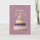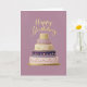 Elegant Tiered Purple and Gold Birthday Cake Card