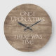 Vintage elegant One Upon A Time There Was Time quote text on a brown coloured faux wooden background written in a very stylish calligraphy script font. Classic retro chic, elegant yet simple basic design for the artistic home décor fashion designer, popular hip trendsetter, whimsical cabin style motif lover.