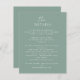 Complement your wedding invitation with our elegant, minimal green wedding details enclosure card. Designed to complement our "Timeless Elegance in Green" invitation set, this card features a customisable front where you can add any title and wedding details of your choice. The back offers the option to showcase your monogram initials or remain blank for a clean finish. Set against a refined green background, it pairs perfectly with the coordinating invitation, insert cards, and belly band—bringing a cohesive and sophisticated touch to your wedding stationery.