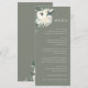 This simple elegant menu features watercolor flowers with lush greenery on a chic olive green background.