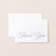 An elegant, traditional design featuring the words "thank you" in script font across the lower front in real silver foil. A versatile design you can use for any occasion when you want to thank someone special! Ideal for weddings. Also available in real gold foil.