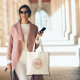 Carry your brand in style with this elegant monogram tote bag, featuring a delicate and luxurious gold trellis pattern and a dotted gold medallion monogram on pink background. Perfect for boutique owners, beauty professionals, entrepreneurs, and stylish executives, this personalised tote is both functional and fashionable. Customise it with your business name, tagline, and website to create a sophisticated promotional accessory or a chic everyday work bag. Ideal for trade shows, networking events, and business swag bags, this tote elevates your brand with elegance and class.