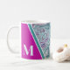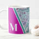 Girly Elegant Teal Fuchsia Agate Monogram Initial Coffee Mug. Crystals and geodes continue to be a favourite trend! This print features and up close image of a vibrant turquoise and purple (magenta) geode stone, complete with little crystals. Add your initial to make it your own.