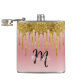 Elegant Trendy Pink Gold Glitter Monogram Initial Hip Flask