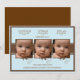 An elegant and modern announcement for your bouncing baby boys! Three frames accented with swirls hold three pictures of your choice with room for each child's name and birth details.
