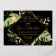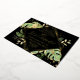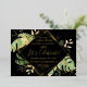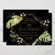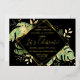 This elegant tropical themed wedding reception invitation features exotic foliage with gold accents on a black background. A modern geometric gold foil frame highlights the gold foil text. Gold foil splatters accentuate the botanical design and brings a bit of sophisticated whimsy to the invitation. This is the perfect wedding announcement and reception invitation for any tropical themed wedding.