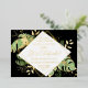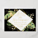 This elegant tropical themed wedding reception invitation features exotic foliage with gold accents on a black background. A modern geometric gold foil frame highlights the gold foil text. Gold foil splatters accentuate the botanical design and brings a bit of sophisticated whimsy to the invitation. This is the perfect wedding announcement and reception invitation for any tropical themed wedding.