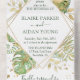 Elegant Tropical Emerald Green & Gold Wedding All In One Invitation