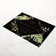 This elegant tropical engagement party invitation features exotic green foliage with gold accents on a black background. A modern geometric gold foil frame highlights the gold foil text text. Gold foiled splatters accentuate the botanical design and brings a bit of sophisticated whimsy to the invitation. This island oasis invite is perfect for any tropical themed or garden engagement party.