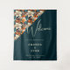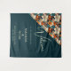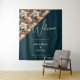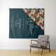 Elegant Tropical Floral Flower Pattern Wedding Backdrop Tapestry. Celebrate your special day with this elegant and romantic wedding welcome sign featuring a stunning floral design on a rich orange and teal background. This backdrop is perfect for couples looking for a unique and sophisticated spot for photo opportunities. Personalise it with your names, wedding date to create a timeless keepsake.