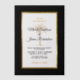Invite your guests to help you celebrate your special day with this elegant invitation featuring modern script, black and gold text including an artistic palm tree and faux metallic gold foil frame with a black border.