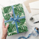 This elegant botanical wrapping paper features a green monstera leaves pattern.