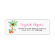 Use this colourful return label to add a tropical touch to your plain every day envelope. It is also perfect for the couple who will be having an Hawaiian beach wedding, a Florida beach wedding, or a Caribbean beach wedding. This label features a palm tree, pineapple, and tropical flowers of blues, greens, pinks, oranges, yellows and reds on a white background. Text is fully personalizable.