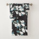 Elegant Tulip Flower Pattern Black Background Bath Towel Set