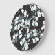 Elegant Tulip Flower Pattern Black Background Large Clock