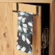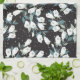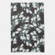 Elegant Tulip Flower Pattern Black Background Tea Towel
