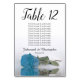 Elegant Turquoise Blue Rose Seating Chart Wedding Table Number