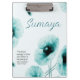 If you appreciate the beauty of flowers and crave an organised life, SumayaCDesignArtworks has got you covered. Our Elegant Turquoise Floral Clipboard featuring an elegant design is more than just a tool, it's a canvas for your dreams and ambitions. Its relaxing Turquoise colour and delicate floral artwork will brighten your day and inspire you to achieve your objectives. Furthermore, with its CUSTOMIZATION options (Name - Quote to keep / change or delete), you can truly make it your own.