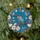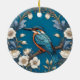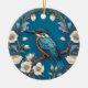 Elegant Turquoise Kingfisher Bird Floral Ceramic Ornament