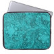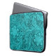 Elegant Turquoise Leather Look Embossed Flowers Laptop Sleeve