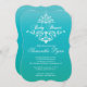 Beautiful unique & elegant turquoise blue ombre baby shower invitation featuring a contemporary white damask floral leaf flourish for a gender neutral baby shower. Available in our shop in a large selection of modern colour choices. Easy to personalise with your party information and guaranteed to make a perfect first impression. An Elegant baby shower invitation for a girl baby shower or baby boy baby shower.