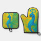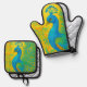 Elegant Turquoise Peacock Bird Decorative Oven Mitt & Pot Holder Set
