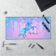 Elegant Turquoise Unicorn Glitter Drips monogram Desk Mat