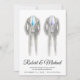 Elegant and chic gay men wedding invitation with two grey tuxedo watercolors with teal blue and purple accents and your first names in a stylish script. On the reverse side, add all of your wedding details in modern typography.