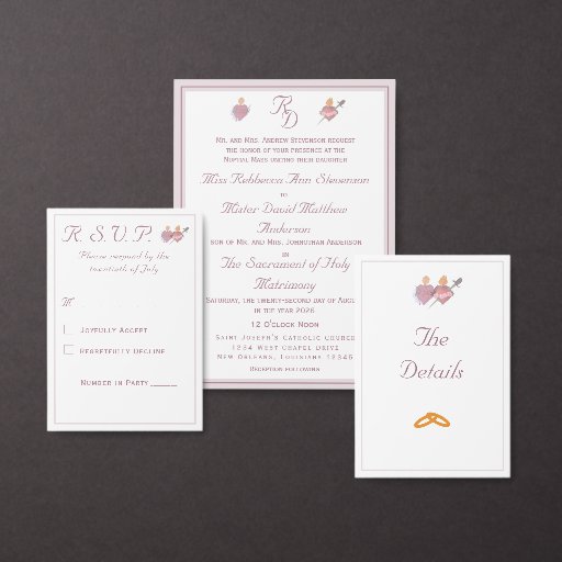 "Two Hearts Catholic Wedding Suite (Dusty Rose)Designed by Joy Domangue