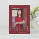 This elegant red graduation announcement card features modern graduate typography with one photo on the front, and a full photo back of the card.