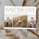 An Elegant Typography 3 Photo Collage Wedding Save the Date with modern type and simple layout on the front. The back is a magnet. Click the edit button to customise this design.