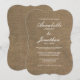 This simple yet classic wedding invitation features an elegant combination of fonts on a dark burlap look background. This wedding invitation is timeless and will work with almost any wedding theme. Perfect for a rustic or vintage themed wedding.
