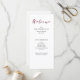 This stunning wedding program features marsala/burgundy coloured calligraphy along with modern black text, on an elegant white background. Perfect for a formal, traditional wedding with a modern spin!