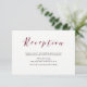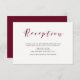 This stunning wedding reception card features marsala/burgundy coloured calligraphy along with modern black text, on an elegant white background.