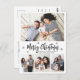 Elegant, Modern Black and White 4 Photo Collage Merry Christmas Script Holiday Postcard. TThis festive, mimimalist, whimsical four (4) photo holiday card template features a pretty photo collage, some snowflake and says Merry Christmas! The „Merry Christmas” greeting text is written in a beautiful black hand lettered typography font type on white colour background. Pretty greeting postcard for your family and friends in this Christmas and Holiday season.