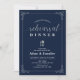 A stylish elegant wedding rehearsal dinner invitation featuring Navy, Silver & white typography with a cute cutlery graphic. Designed by BaraBom Studio